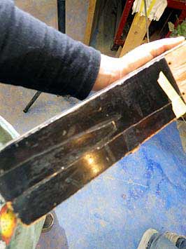 共鳴板も心配だ弦を取り外したら弦圧も見ておきたい