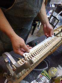 古いフリッツクーラーピアノ、部品も完全にくたびれていて交換です