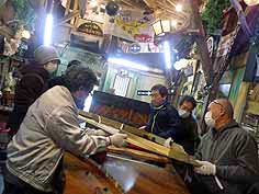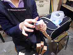 共鳴板のニスはがし作業