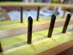 共鳴板ト駒、まさに心臓と動脈と言った感じだ共鳴板のきれいさは音に反映する、凸凹面を消してつるつるの状態にしたい