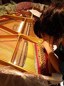 1日目チューニングピン張力を半周緩め次の日から弦の取り外し作業開始