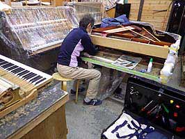 都内からはいってきたG5、共鳴板は割れてしまっている、これでは何度調律しても安定はしない