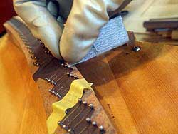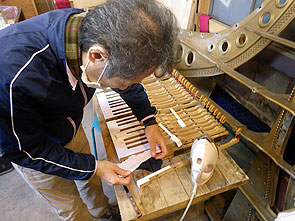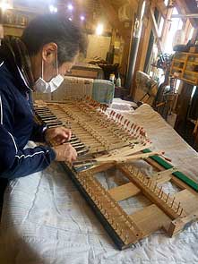 弦の張力を2日間かけて緩めていく、共鳴板を痛めないように徐々に張力を落としていくのだ