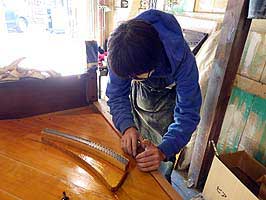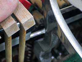 駒を挟んで真っ二つに割るように割れている、これでは張力の安定は無理