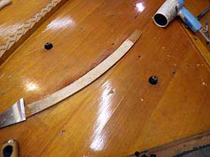 ピン板が割れてしまっていると修理と言えばピン板交換チューニングピンが撃ち込まれている板を作り直し