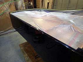 ピアノ共鳴板の淵についているラックニスは確実に落としておきたい~~ここは雑音の原因になる