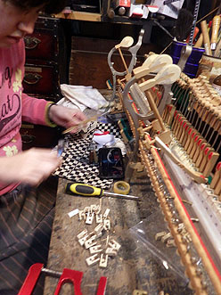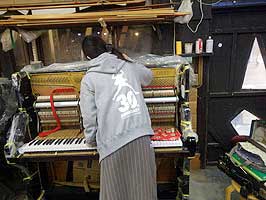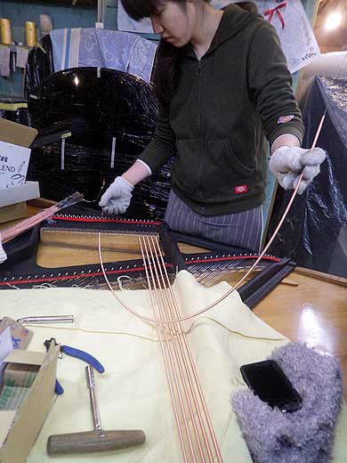 ピアノを寝かして弦圧~共鳴板の状態フレムの状態をチェック点検