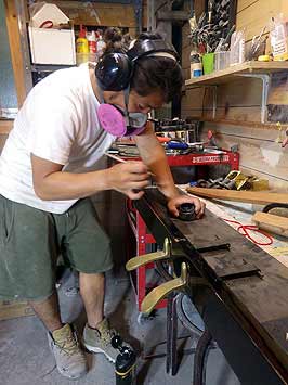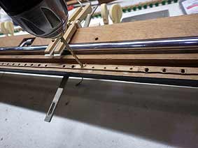 この写真は弦張り込み前のピンブッシュ打ち込み作業