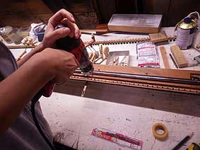 駒を取り付けるときに共鳴板向こう側ねじ止め(木)でしなければならず