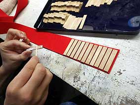 無垢の短駒を加工していく 厚さピン位置を確実に正確にあけないと