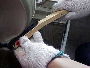これは逆でホール穴を小さくしなければならない 大きう空いた穴を小さくするのはできない、のこ目を入れて木を差し込む