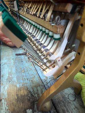 ヤマハU1の弦ピン関係をもう一度張りかえる作業 また新品としてお使いになれます