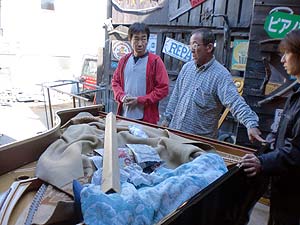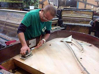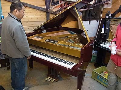 ピアノ本体あちこちすり落としてある、弦を張り終えたら木村君が塗装をするらしい