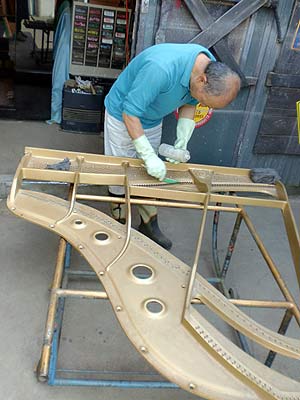フレームも塗装してあるために新たに製造番号を打ち直します