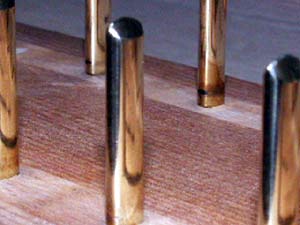 弦圧等のチェックが終わったらピンブッシュを打ち込みっチューニングピンホールの穴をあけ