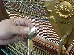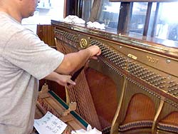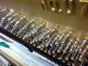 ヤマハU7特有の総アグラフ、この部分は通常見るピアノの中身と一線を引くところあり