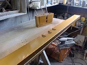 はかまの塗装、一度ペーパーで古い塗装を剥ぎ取ります