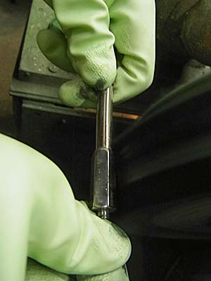 弦ピンブッシュを取り外して新しいピンブッシュを植え込み穴あけ作業