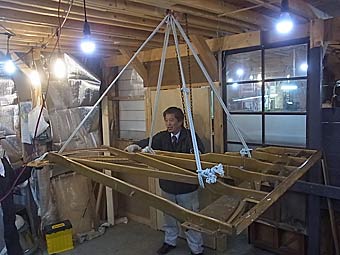 足をティーパーに削り込み片足2個作り足を渡す。組み方のところだ