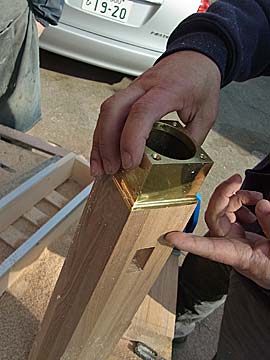 足の受けも勝手に穴をボスボスあけられてしまっている、それと足の受け部分はがたがた