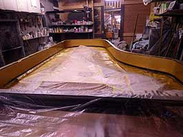 共鳴ニスが劣化ベトベトしてます。フレームを上げて修理