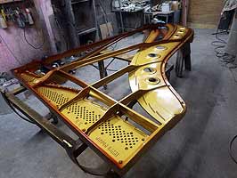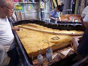 ピアノ大屋根裏側の磨き