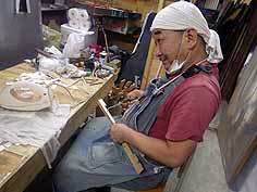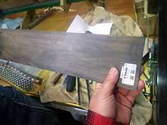 黒檀を使ってつくり鍵盤押さえに貼る、