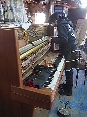 象牙鍵盤の磨き 鍵盤際ぞり等の作業